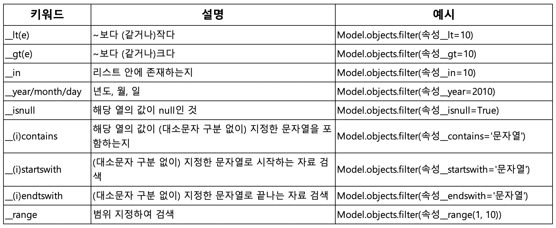 메소드 : 쿼리셋을 이용해서 정렬하거나, 기능을 표시하는 방법