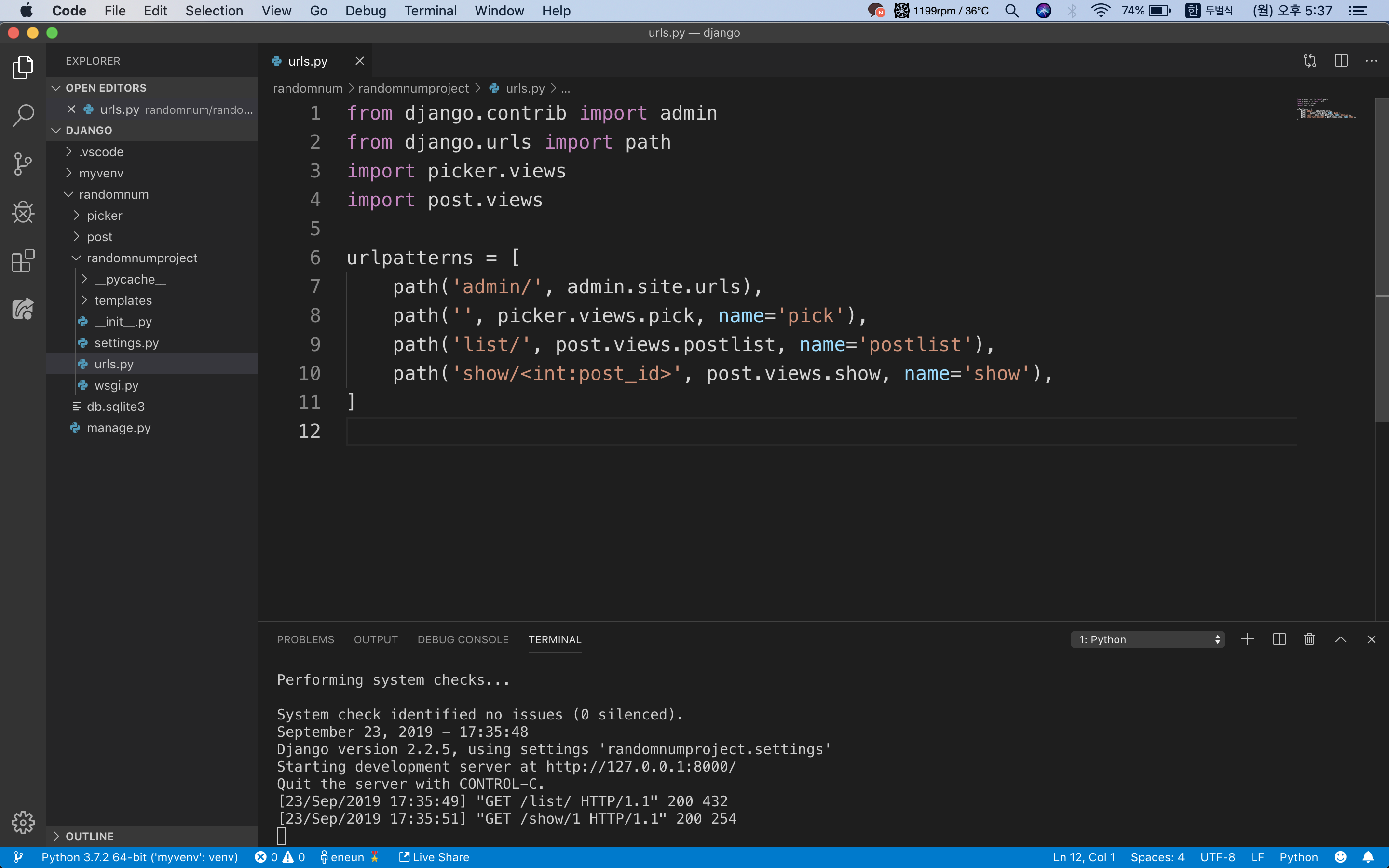 picker 앱도 마찬가지로 urls.py를 만들고 내용을 채워줍니다.